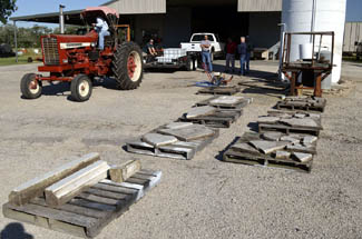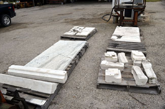 | Stones on pallets prior to cleaning. |